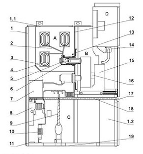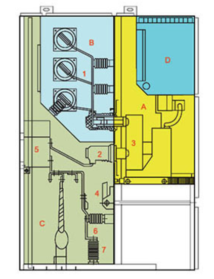 8. Grounding switch 9. Cable 10. Surge arrester 11. Grounding main bus