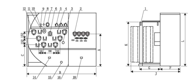 ☆ The tap-changer has three or five gears, marked by رہ, جمع, جمع, D, and E, and the tap-out range is 10جمع±5% or 10جمع±2*2. 5%。